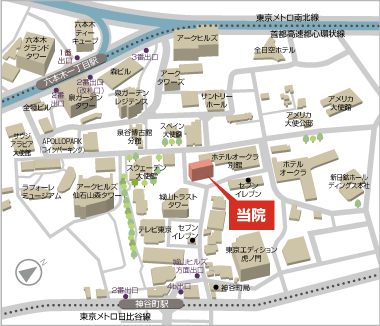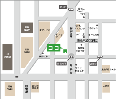 道路は端までまっすぐのばし、薄いグレイで着色し、建物は●または薄い色の形状で表記し、目標物はポイントとなる目立つ色で表記。