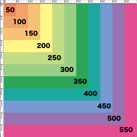 横のスケールと縦のスケールの数字は縦横のピクセル数です。
